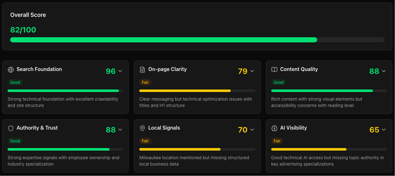 Let’s connect to build your 2026 roadmap and secure your place in the new search landscape. Provide us an email and the website you want us to analyze and we will provide you an audit and roadmap of where you are today and the steps to improve your visibility.